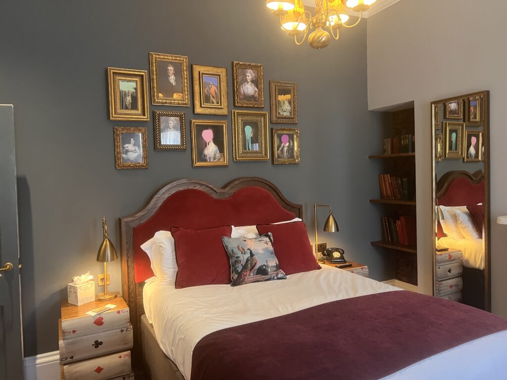 Hotel Indigo Bath is our top pick for where to stay in Bath, and it’s one of those rare cases where the hotel is part of the experience rather than just a place to sleep. The building is a row of Georgian townhouses on South Parade. The hotel opened in 2020 after a multi-year restoration, and the design leans into Bath’s history throughout. Room themes include “Literary Hideaway,” “Romance & Mischief” and “Architectural Beauty.” All 154 rooms have Hypnos beds with Egyptian cotton linen, Nespresso machines, a stocked minibar included in the rate, and bathrooms that are genuinely good rather than just adequate.